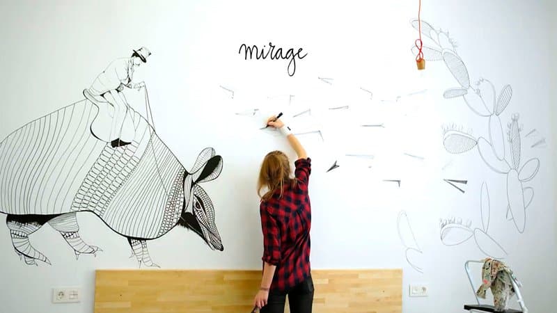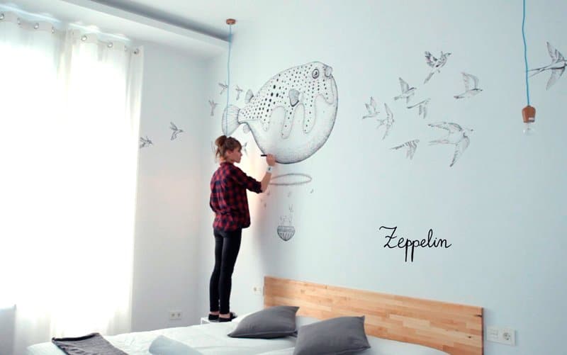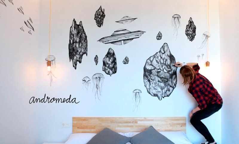 Mural intervention «Delirius» for the new floor at the Rodamón hotel in Barcelona.