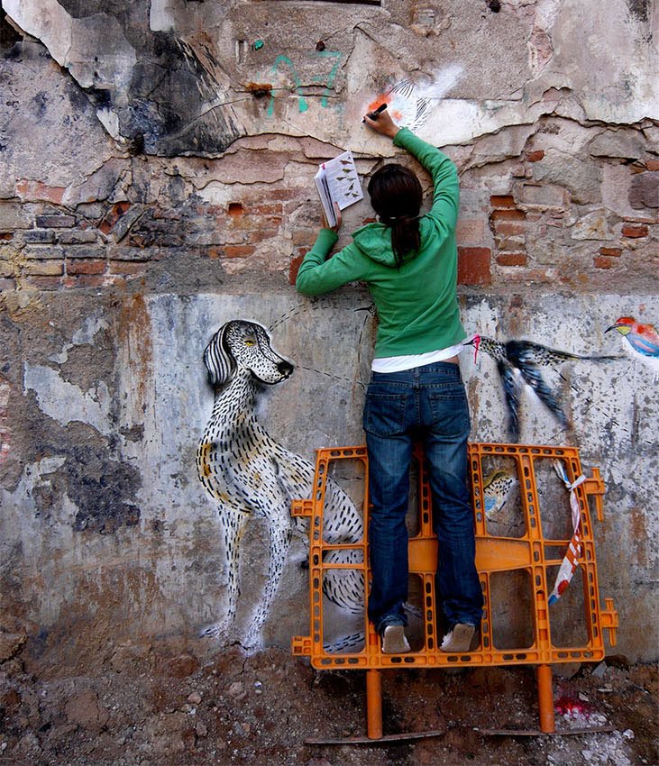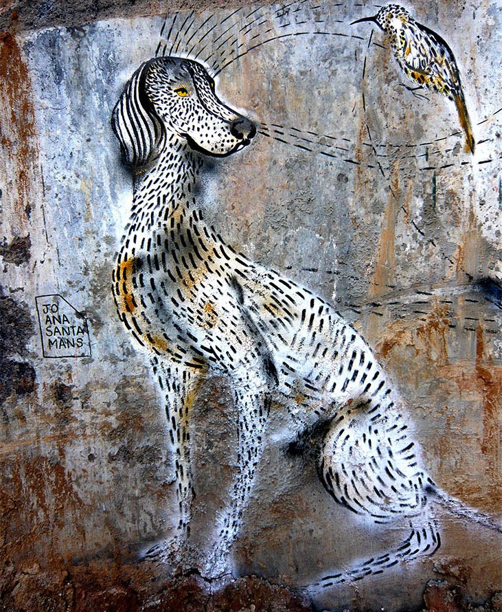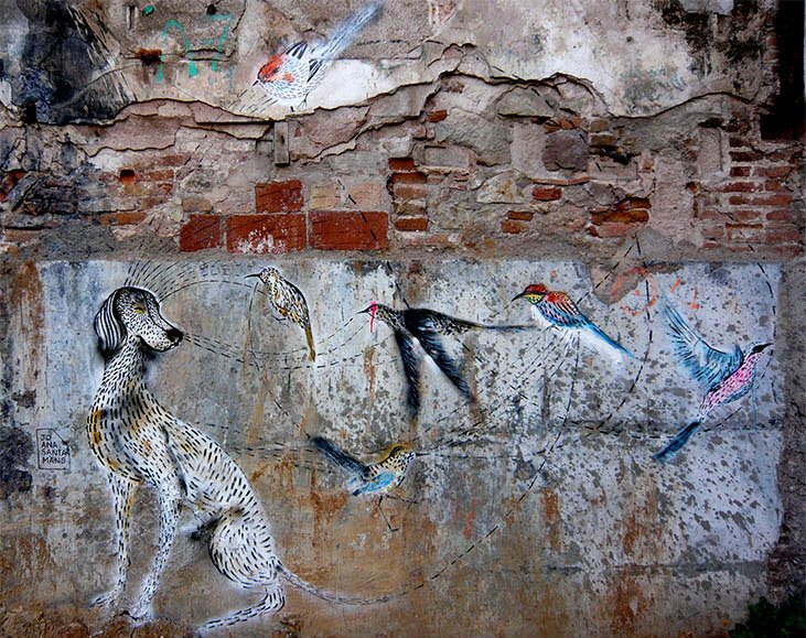 Intervention on a street wall / Barcelona and Esparreguera village / Acrylic, spray and paintmarker.