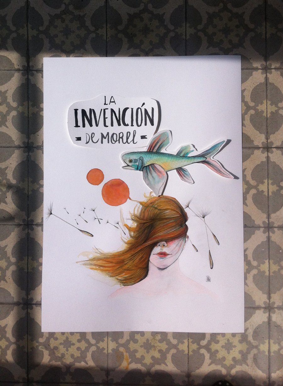 Live illustration for the cover of the classic novel «La Invención de Morel» on TV2’s «Página 2» program.
