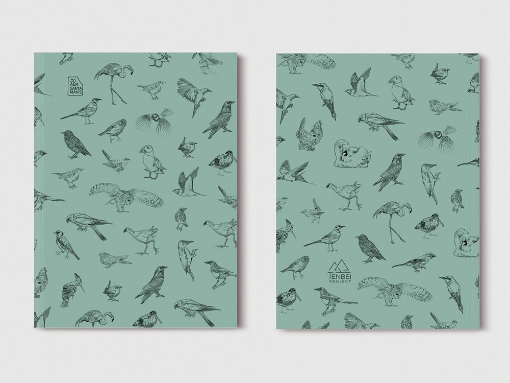 Agenda con ilustraciones de pájaros y libreta con ilustraciones de insectos para TenbeiProject.